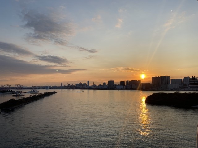 Công viên ven biển Odaiba có tầm nhìn thoáng đãng, cảnh hoàng hôn nơi đây đẹp như tranh vẽ. Toàn cảnh vịnh Tokyo với những tòa nhà trọc trời, cầu Rainbow hùng dũng thả dáng trên mặt nước lấp lánh ánh chiều tà.