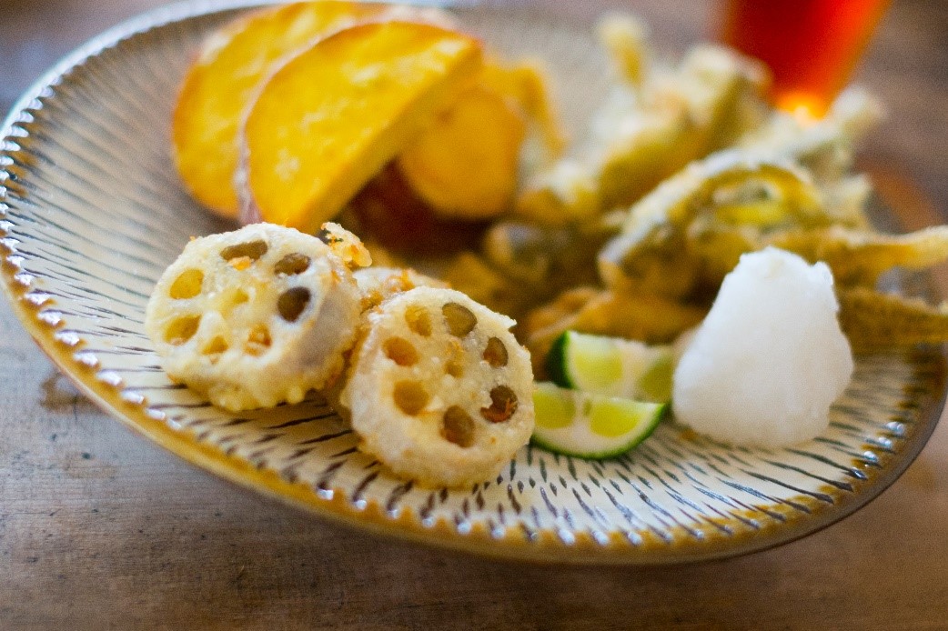 - Bày rau tẩm bột rán lên đĩa kèm theo chút muối và một lát chanh và mời bạn thưởng thức!