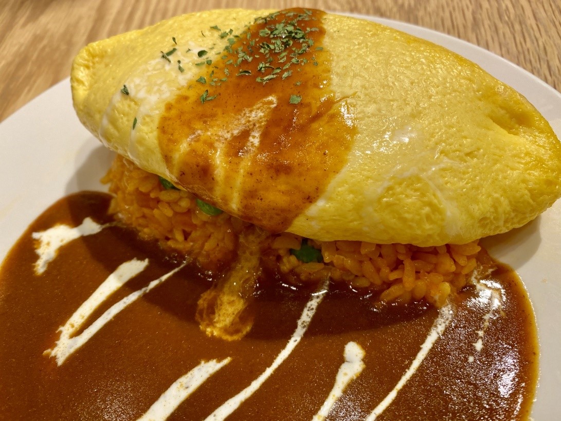 - Dùng chảo và đũa đẩy phần trứng đã tráng trong chảo sao cho trứng lăn lên lưng phần cơm gà. Phủ sốt cà chua ketchup lên trên mặt. Sau đó, dùng dao rạch nhẹ dọc phần trứng, trứng sẽ tách ra và ôm lấy phần cơm rất đẹp mắt