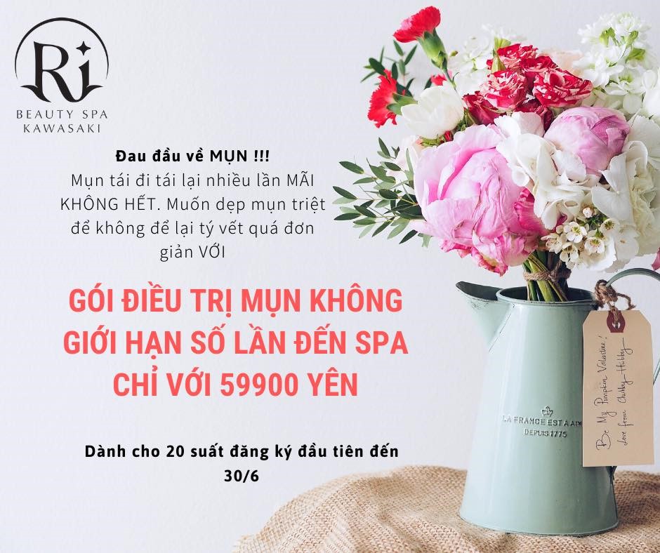 Ri Beauty Spa là một spa mới khai trương, chủ là người Việt Nam, với mong muốn trở thành 1 địa chỉ uy tín về chăm sóc sức khỏe và sắc đẹp dành cho cộng đồng người Việt tại Nhật. Spa nằm tại trung tâm của Kawasaki, chỉ cách ga 6 phút đi bộ.