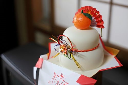 Salah satu jenis mochi yang disajikan saat tahun baru adalah Kagami Mochi. Kagami mochi adalah kue beras spesial yang terdiri dari dua mochi dengan ukuran yang lebih kecil diletakkan di atas yang lebih besar. Ini adalah makanan yang didedikasikan untuk para dewa selama Tahun Baru. Kedua mochi tersebut melambangkan tahun-tahun yang sedang berlangsung dan yang akan datang, atau “yin” dan “yang”.