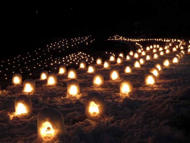 Vào ban đêm, lễ hội có vô số hang tuyết lớn nhỏ thắp sáng hàng trăm ngon nến và biến ngôi làng nhỏ trông như một thế giới thần tiên giữa mùa đông huyền diệu.