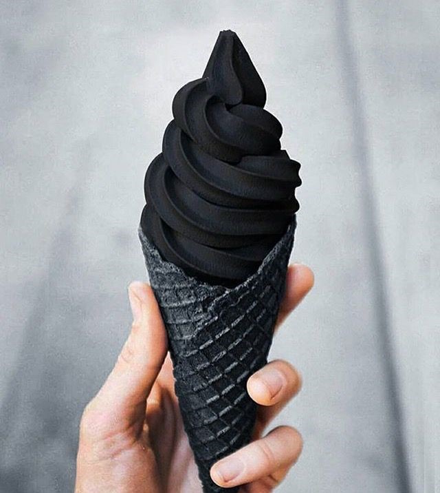 Es krim hitam menjadi salah satu makanan unik khas Halloween. Es krim buatan Zaku Zaku Jepang ini terbuat dari bahan dasar bubuk coklat hitam dan bubuk arang bambu. Anda tidak perlu khawatir ketika makan es krim ini karena warna hitamnya tidak akan membekas di gigi.