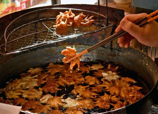 Sebelum daun momiji ini digoreng, perlu membuat adonan terlebih dahulu. Adonannya sangat sederhana yaitu tepung, gula, biji wijen, dan air dicampur jadi satu. Kemudian daun-daun momiji tersebut dicelupkan pada adonan lalu digoreng selama kurang lebih 20 menit.